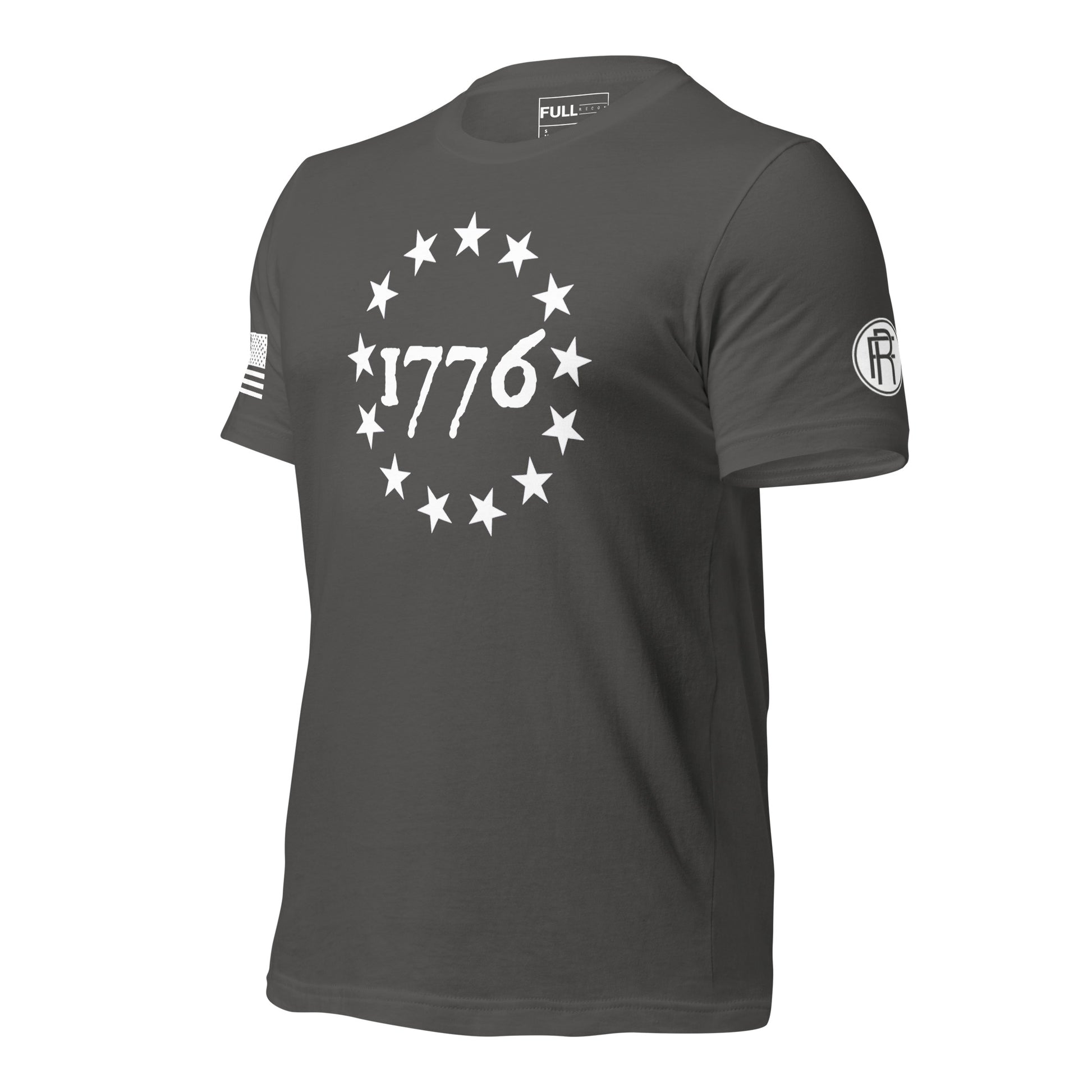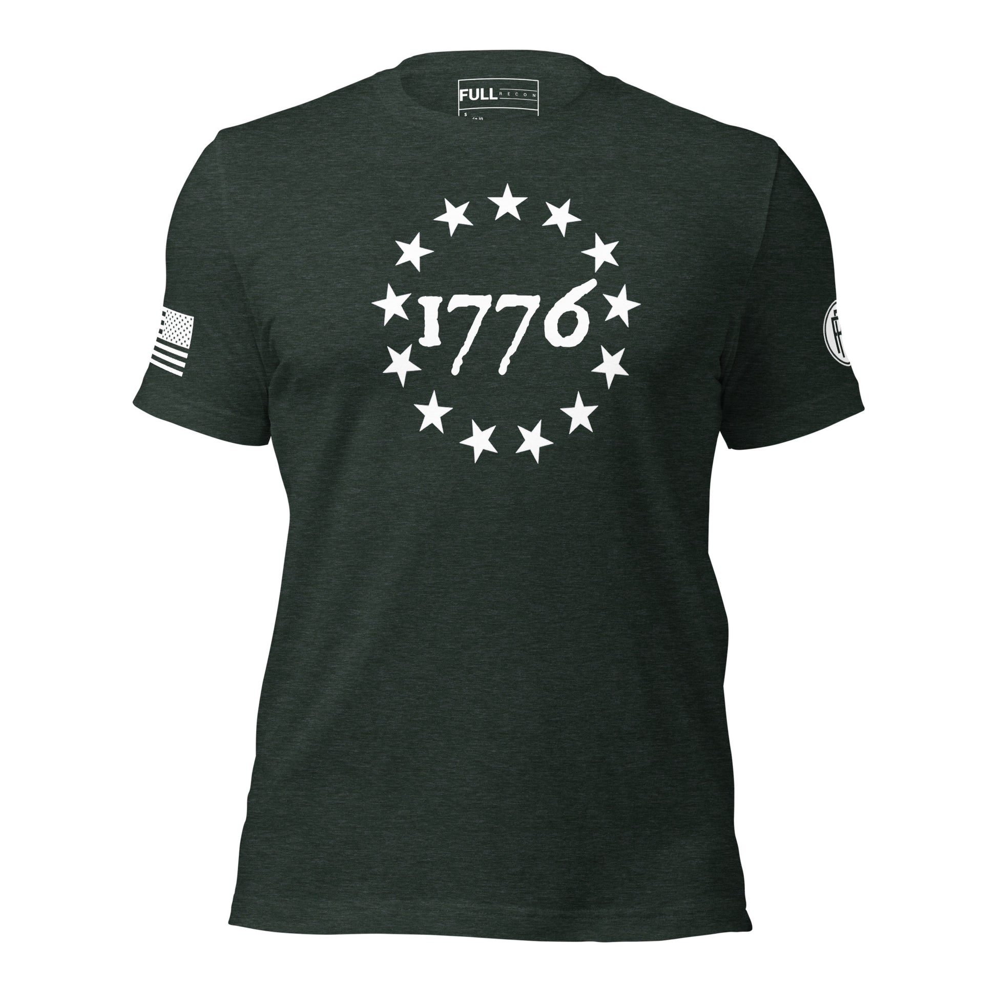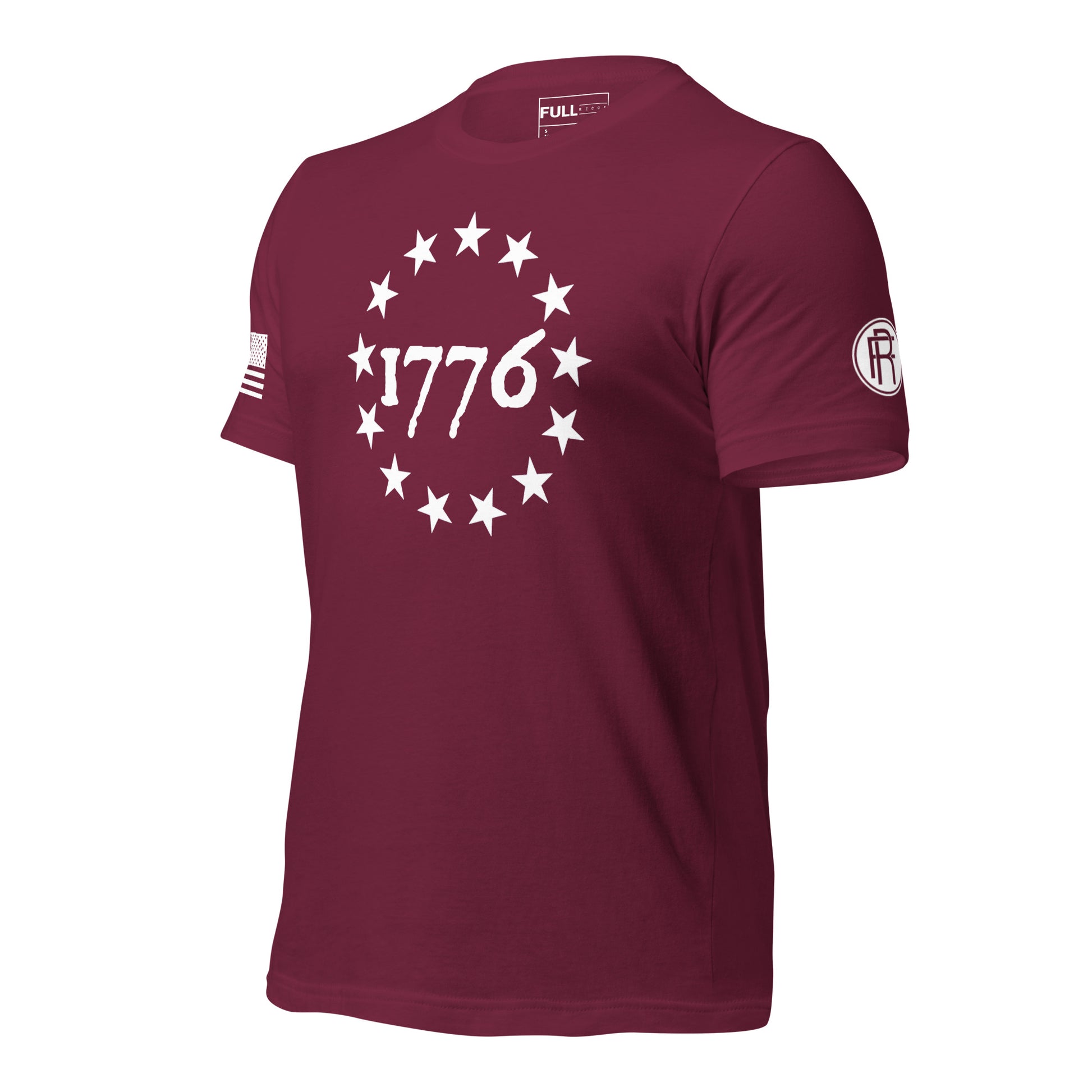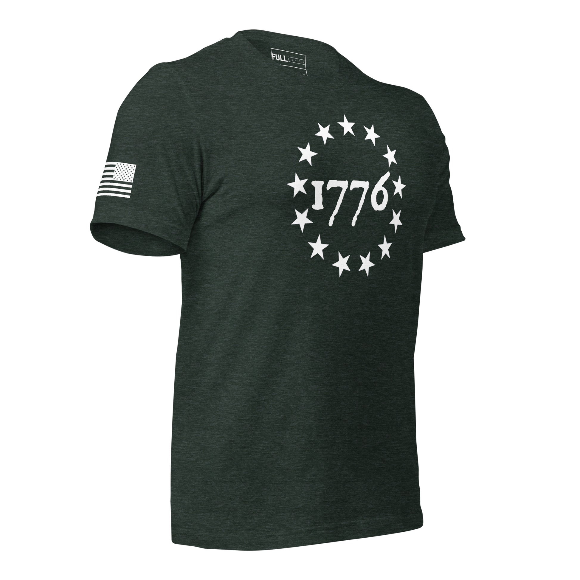 Introducing the 'Stars of 1776' t-shirt, a powerful tribute to the birth of a nation and the enduring spirit of freedom. This shirt showcases the thirteen stars that adorned the Betsy Ross flag, representing the original colonies that united in pursuit of liberty. Each star symbolizes the resilience and determination that defined the historic year of 1776 when America declared its independence. By wearing this shirt, you proudly honor the legacy of those who fought for liberty and celebrate the timeless values upon which our great nation was built. Let the stars on your chest serve as a reminder of the courage and sacrifice that have shaped America's remarkable journey. Together, we carry the spirit of 1776 and continue to strive for a brighter future for all.